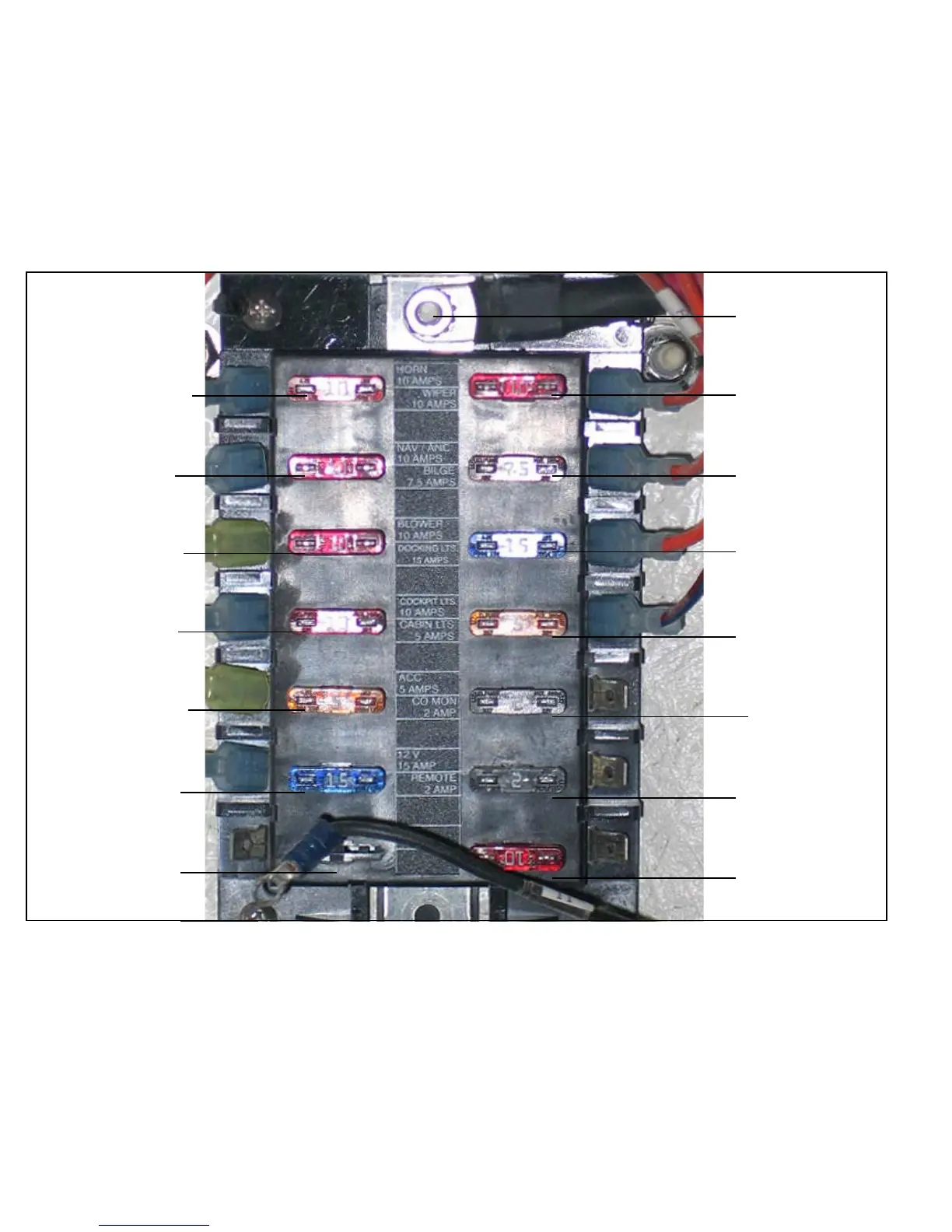 Regal 2100 - Fuse Panel Description w;Breaker Size