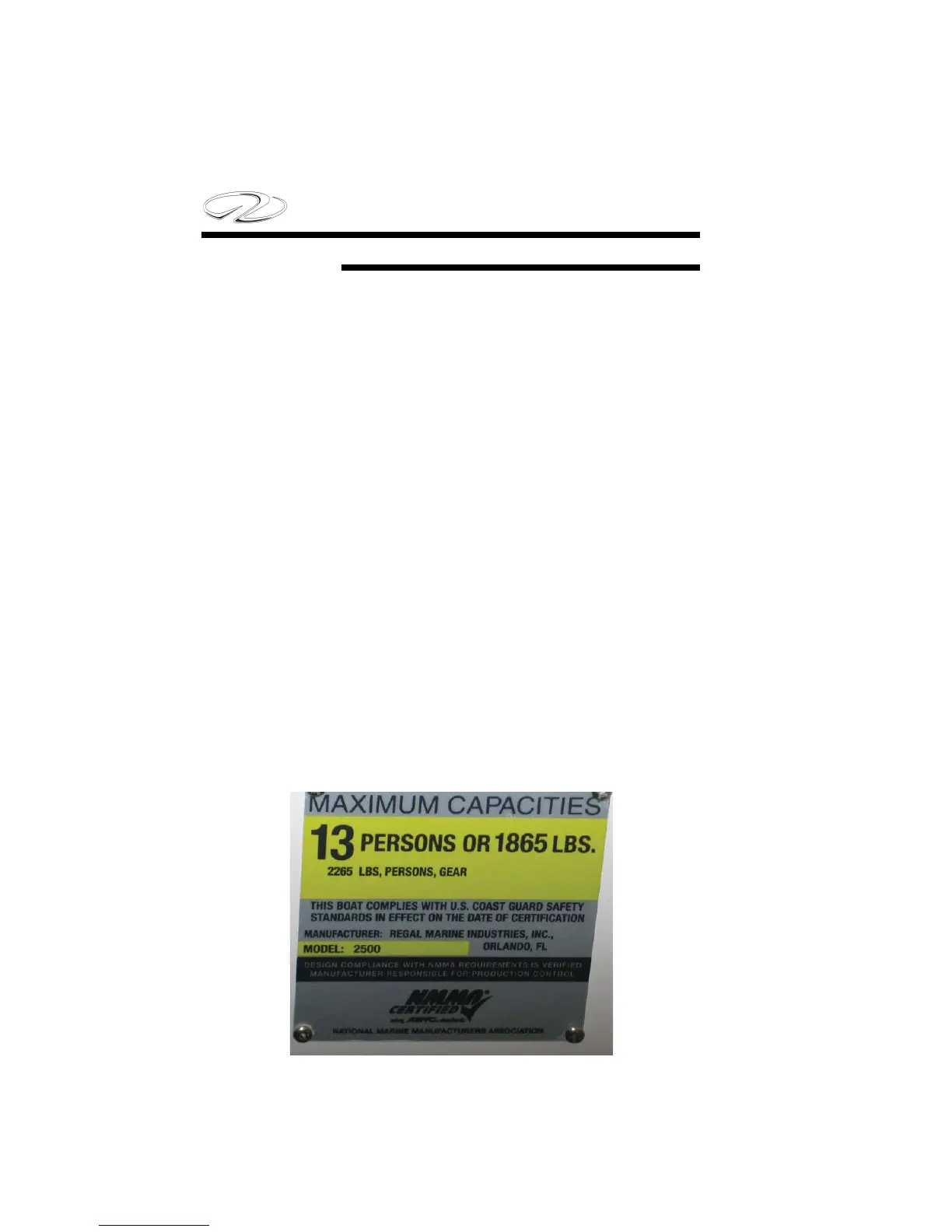Close to the helm on Regal boats up to 26’ in length is a capacity plate.