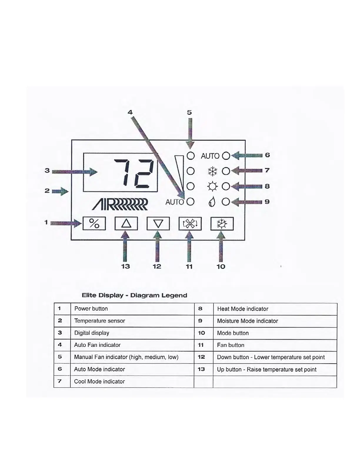 Note: The Elite display continually monitors the system components. Should a problem develop it sends a diagnostic code to the control