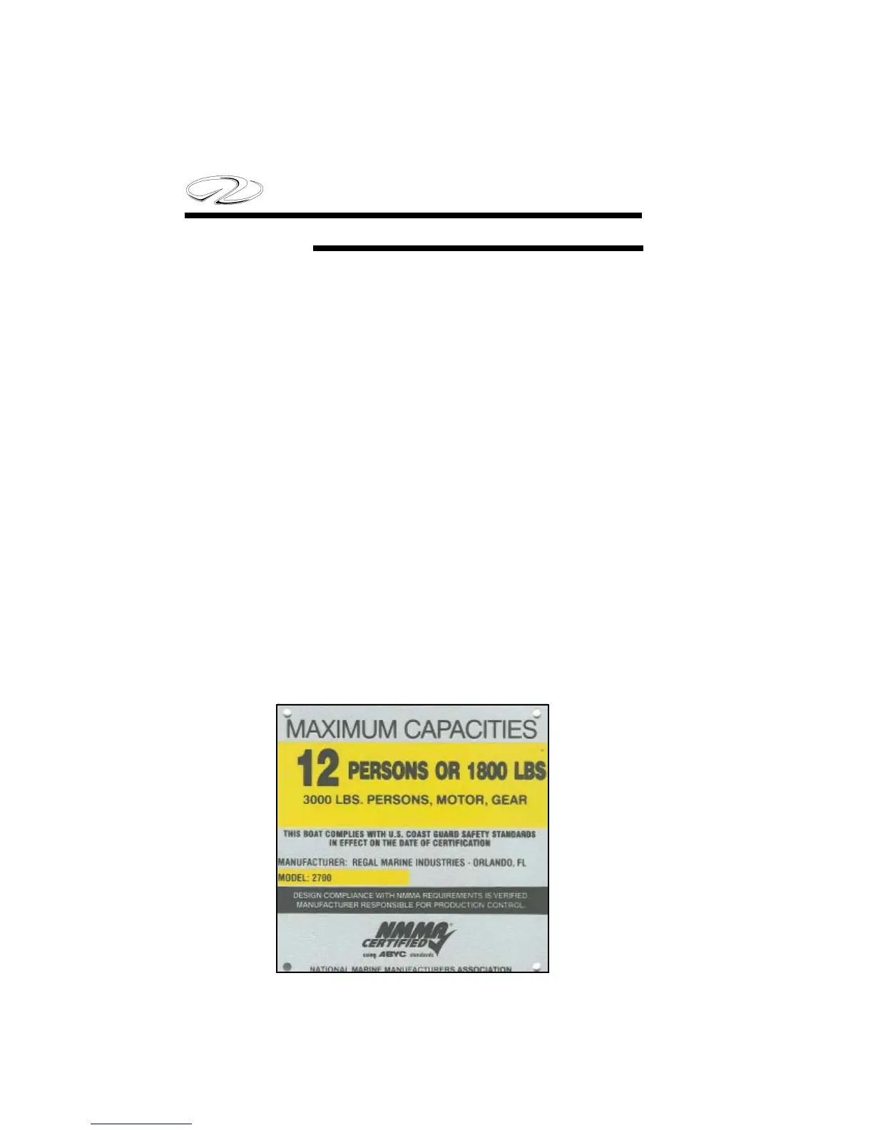 Close to the helm on Regal boats up to 26’ in length is a capacity plate.