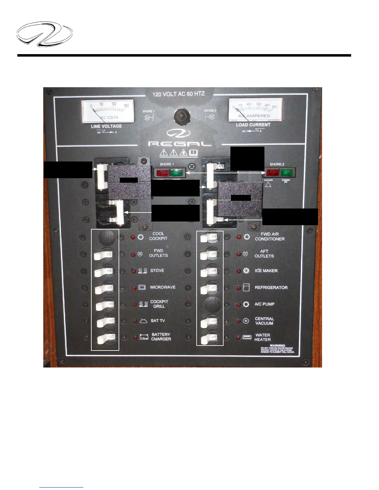 The typical main AC 120 volt control panel is located at