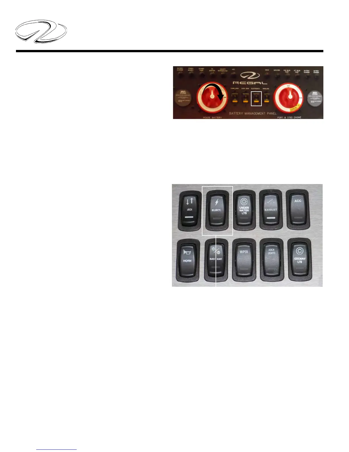 2. Activate the “electronics” switch at the helm panel