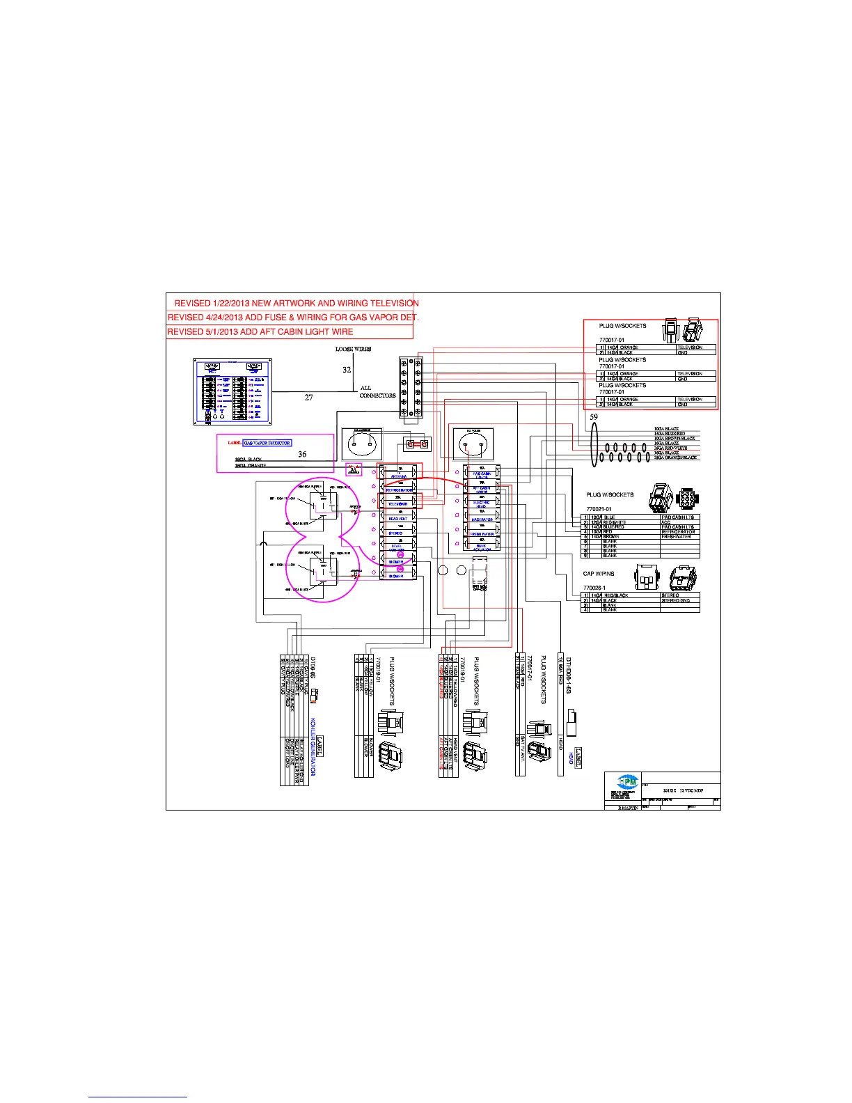 32 EXPRESS MAIN 12 VOLT DC SHIP’S PANEL WITH BREAKER SIZES (REAR VIEW)