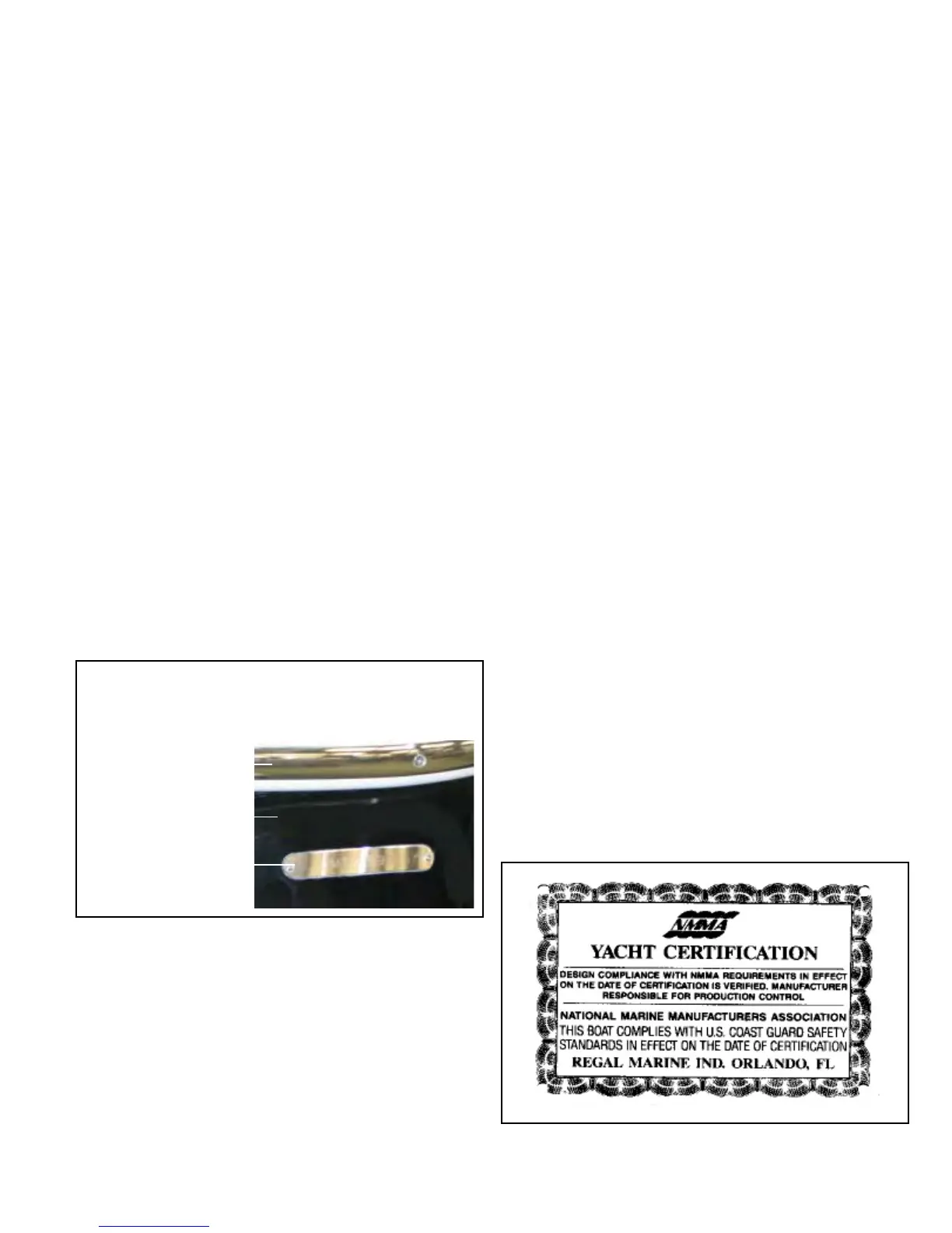 NMMA YACHT CERTIFICATION PLATE