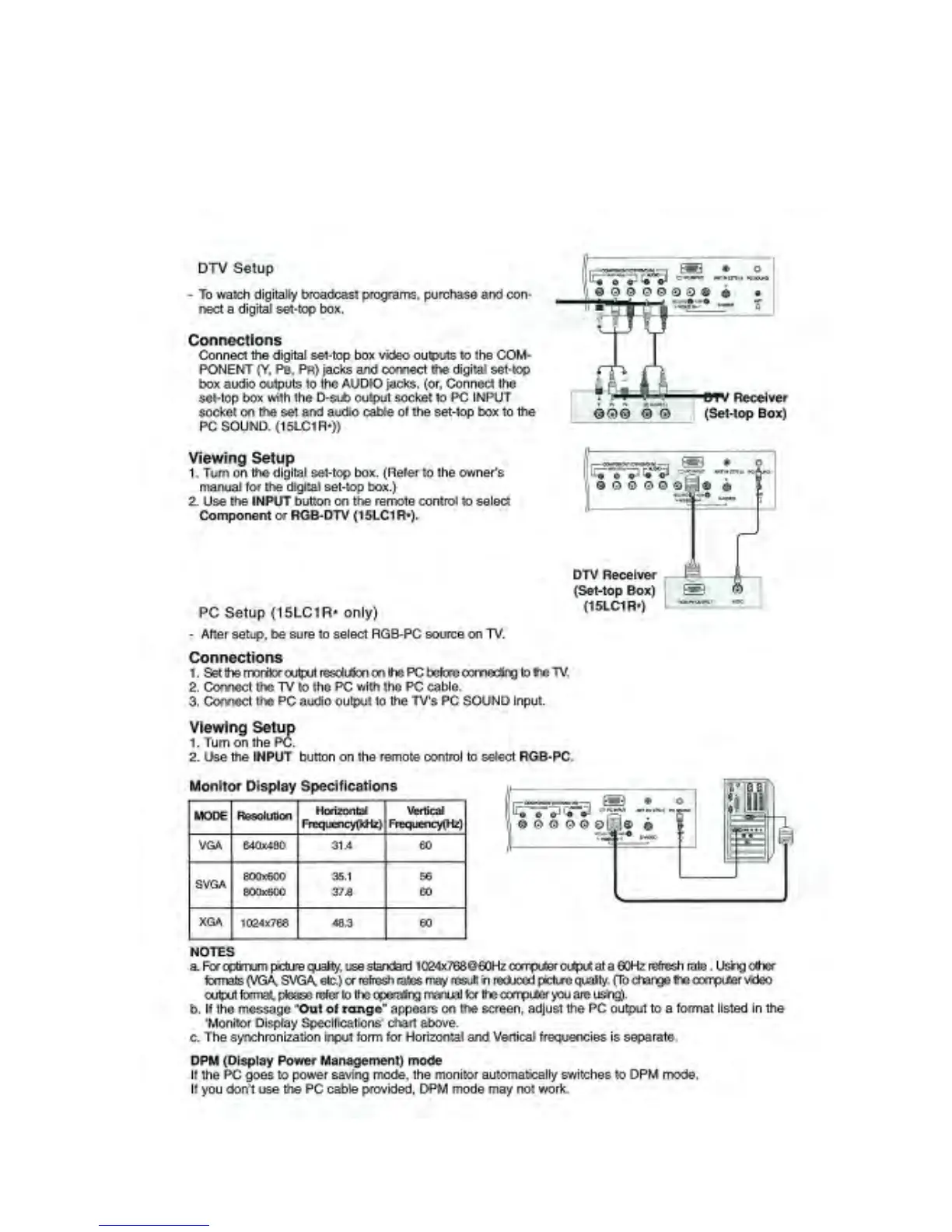 Regal 3760 - Lg Television Digital Connections; Monitor Display Specifications; Viewing Setup
