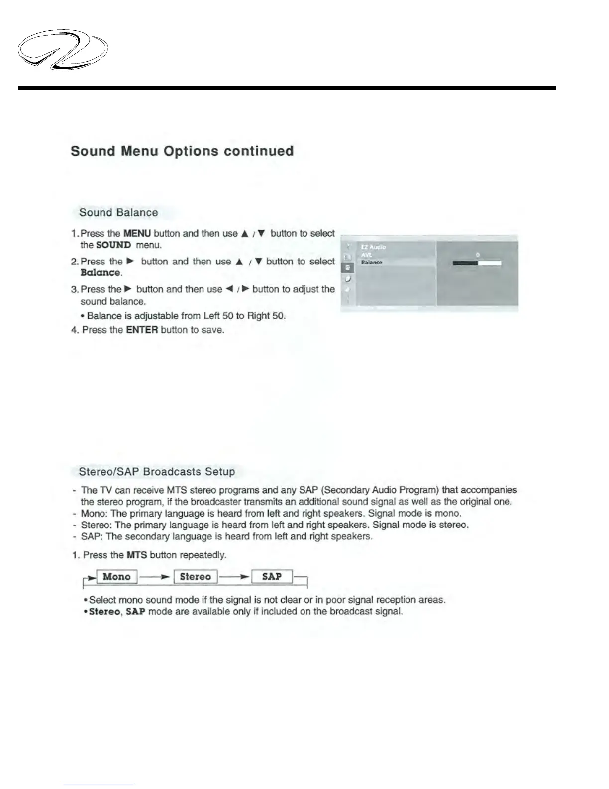 LG TELEVISION-SOUND MENU OPTIONS CONTINUED