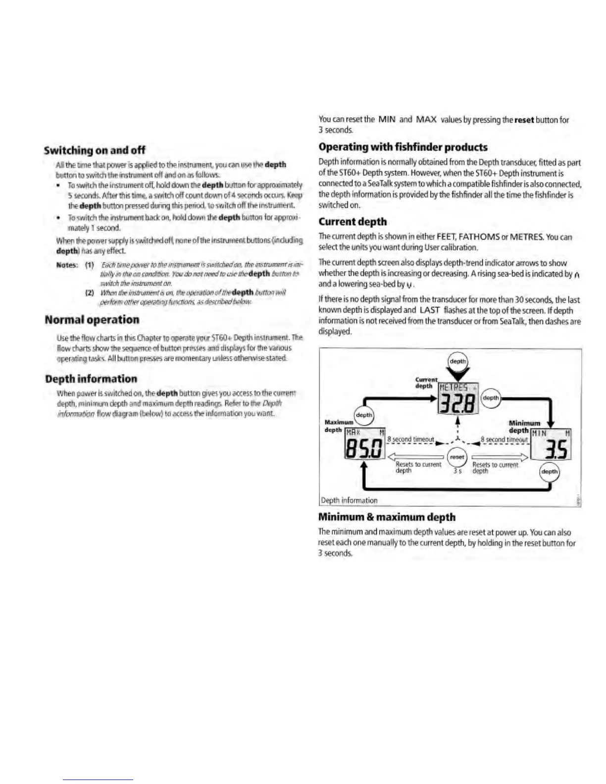 Regal 3760 - Depth Information; Normal Operation; ST60 Operation Basics; Switching on and off