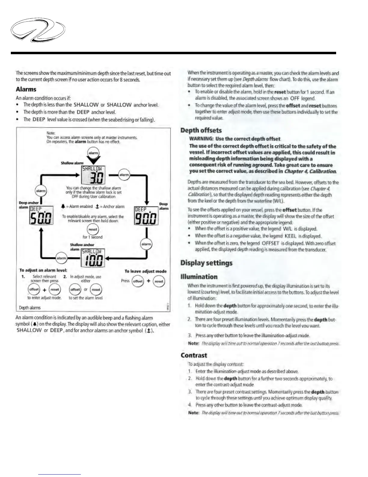 Regal 3760 - Alarms; Depth Offsets; Display Settings; Illumination