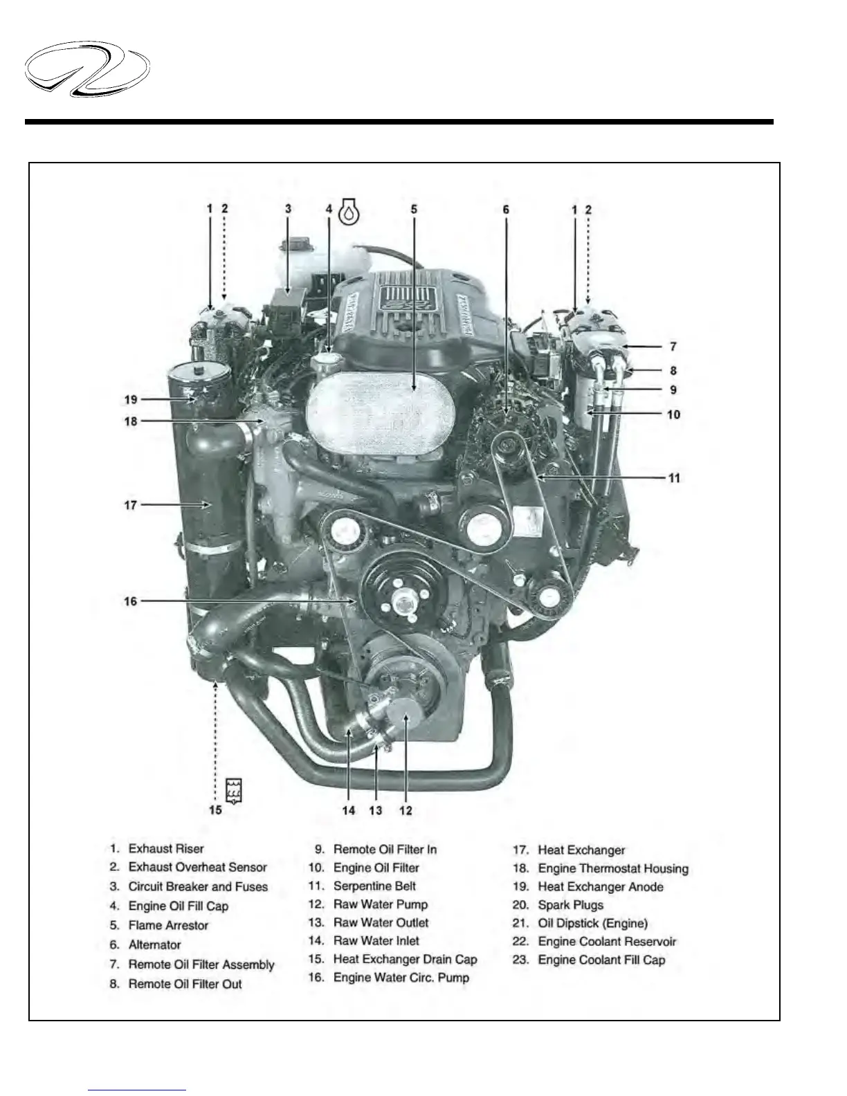 Regal 3760 - Volvo V-Drive Engine Parts Identification-Front View