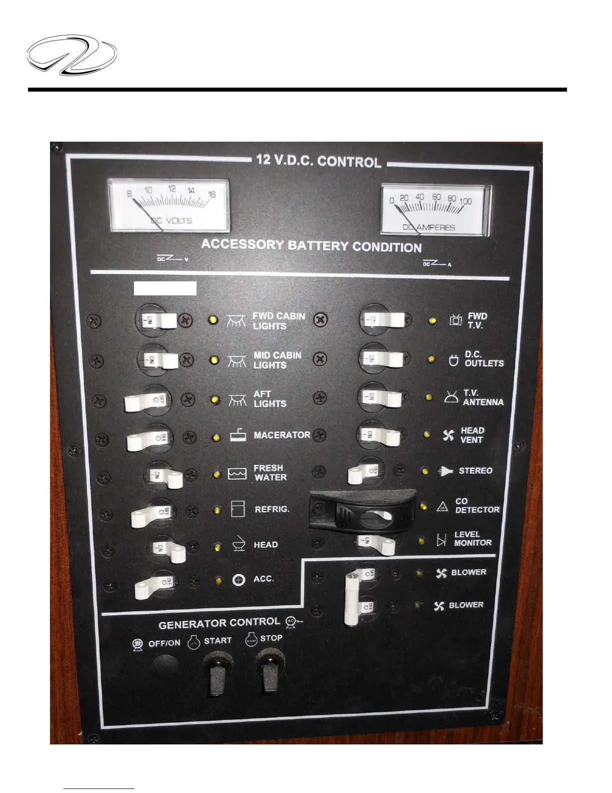 TYPICAL MAIN DC PANEL METER/SWITCH FUNCTIONS
