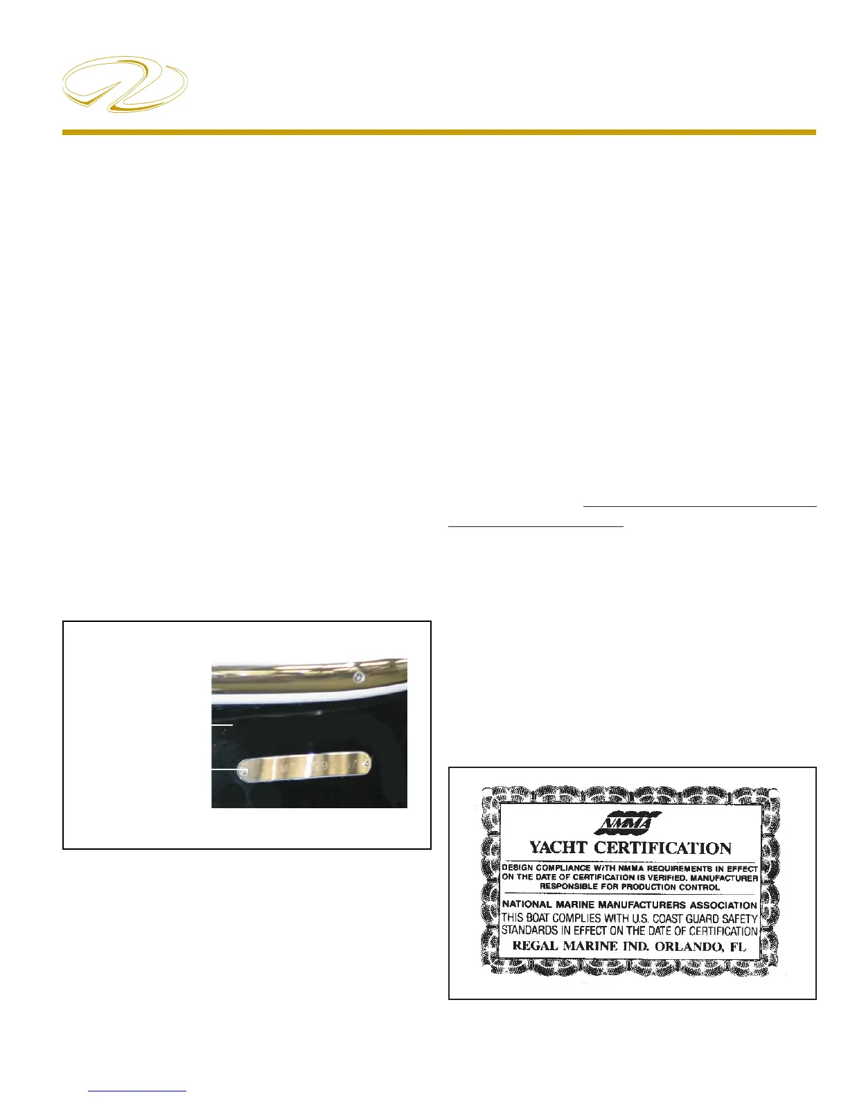 your Regal yachts’ model, hull number, month and year of