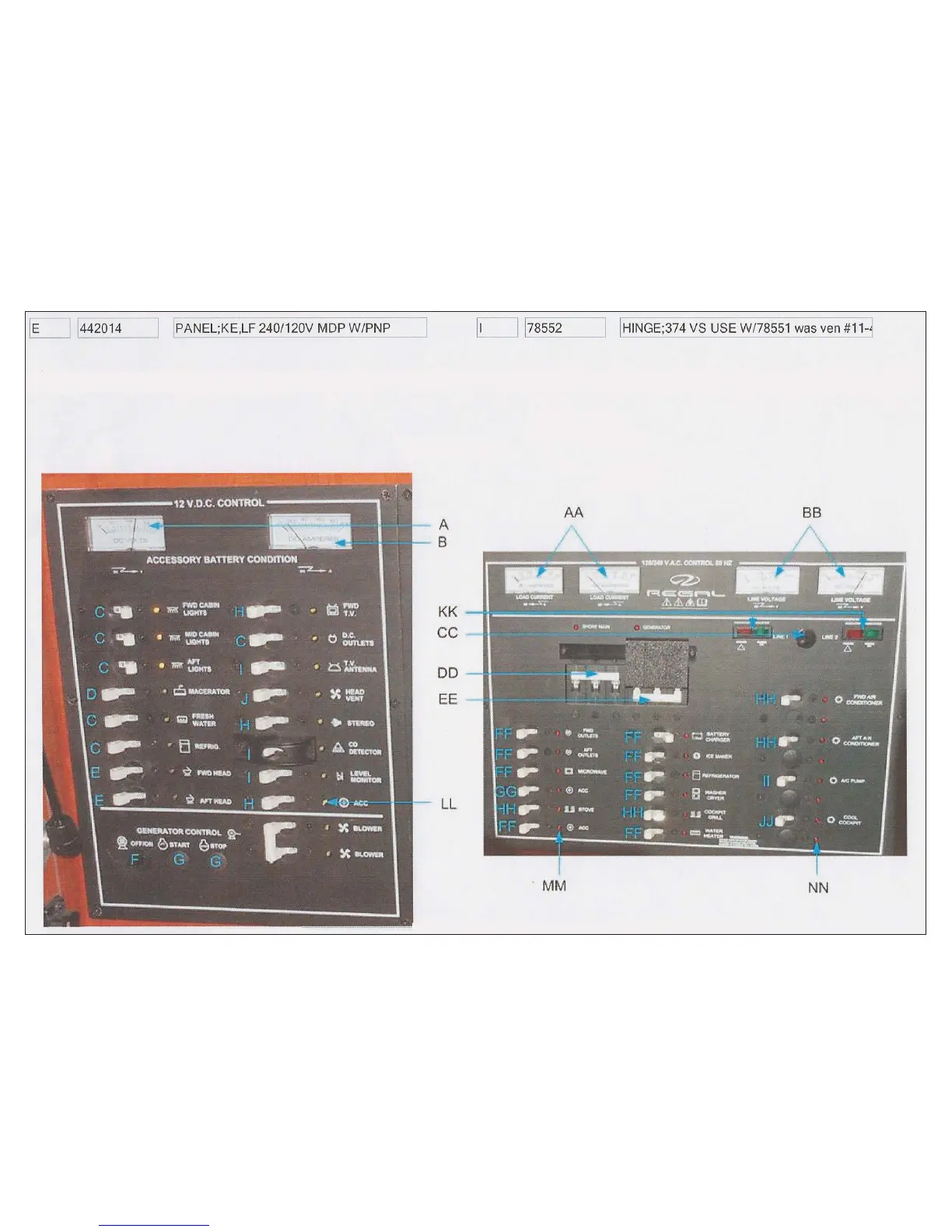 42-46 MAIN SHIP’S AC/DC PANEL W/ BREAKER SIZES PART# 442014