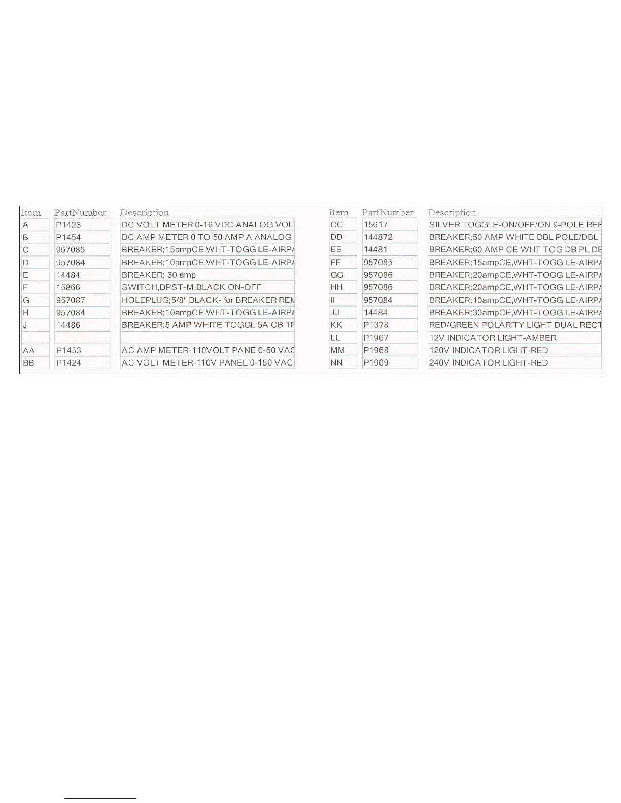 42-46 MAIN SHIP’S AC/DC PANEL W/ BREAKER SIZES LISTED