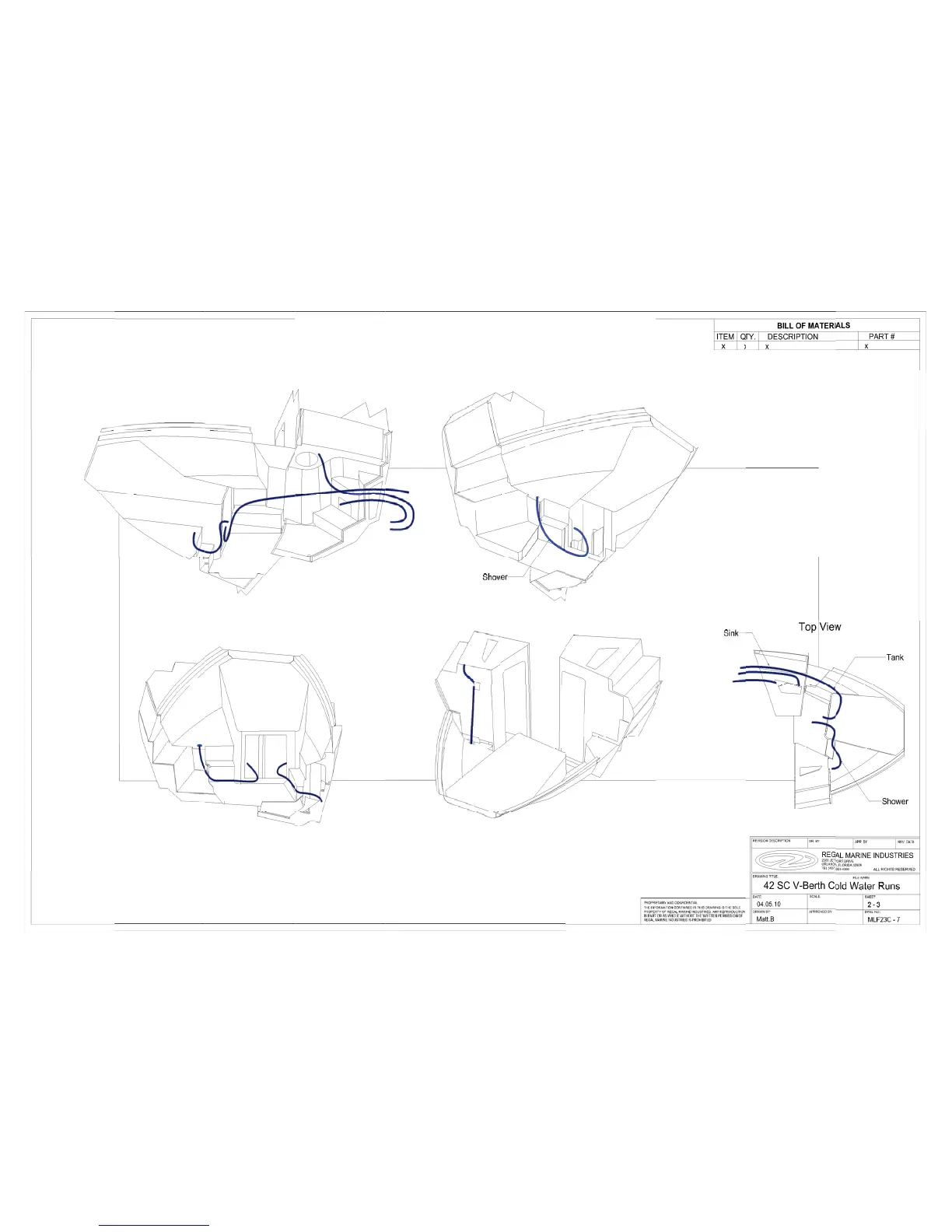 42 SC V-BERTH COLD WATER PLUMBING RUNS