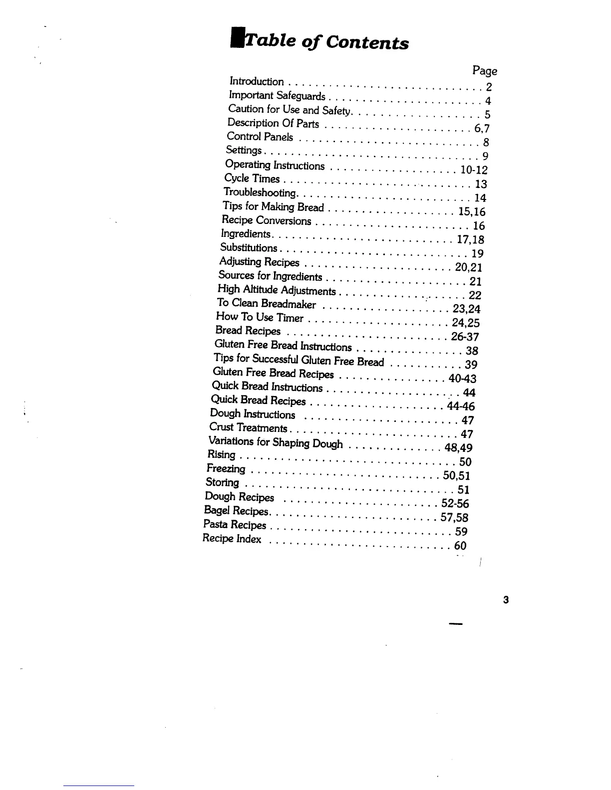 Regal K6722 - Table of Contents