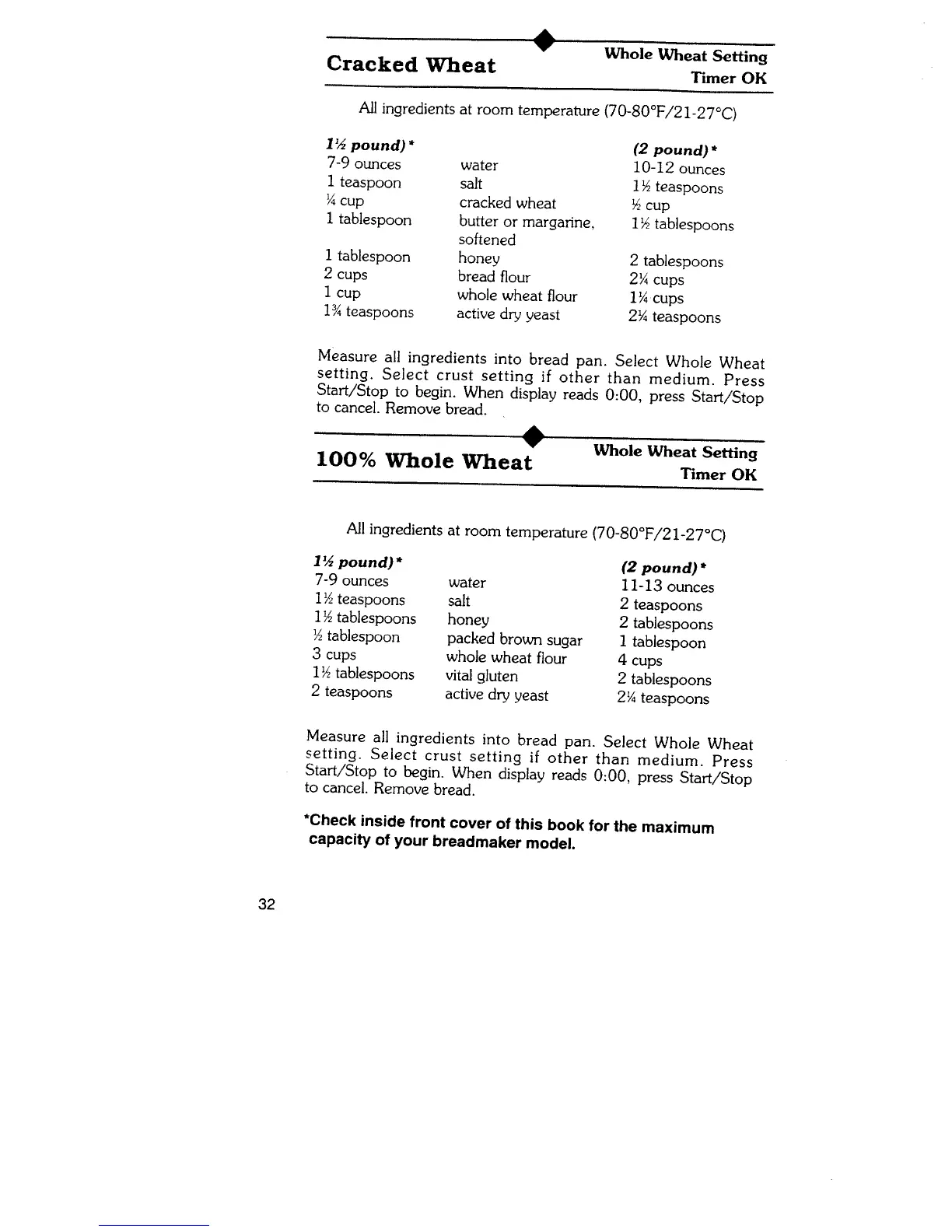 Regal K6722 - Cracked Wheat Bread Recipe; 100% Whole Wheat Bread Recipe