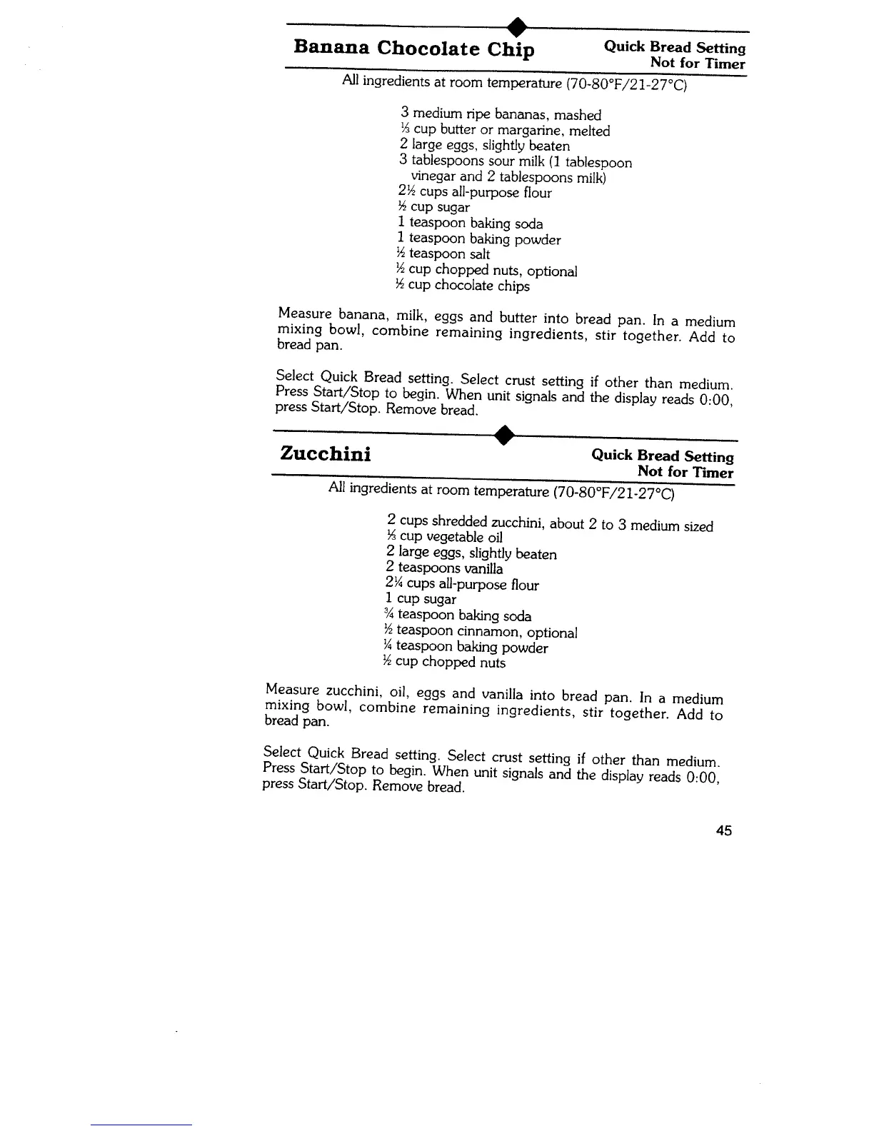 Regal K6722 - Banana Chocolate Chip Quick Bread Recipe; Zucchini Quick Bread Recipe