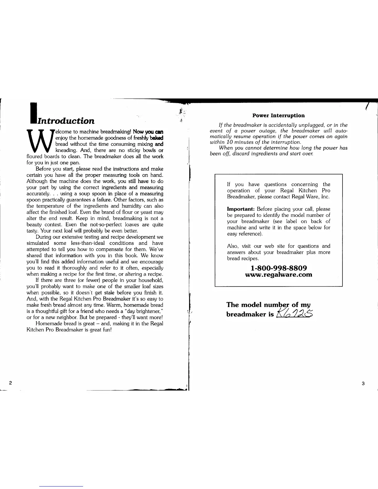 Breadmaker, please contact Regal Ware, Inc.