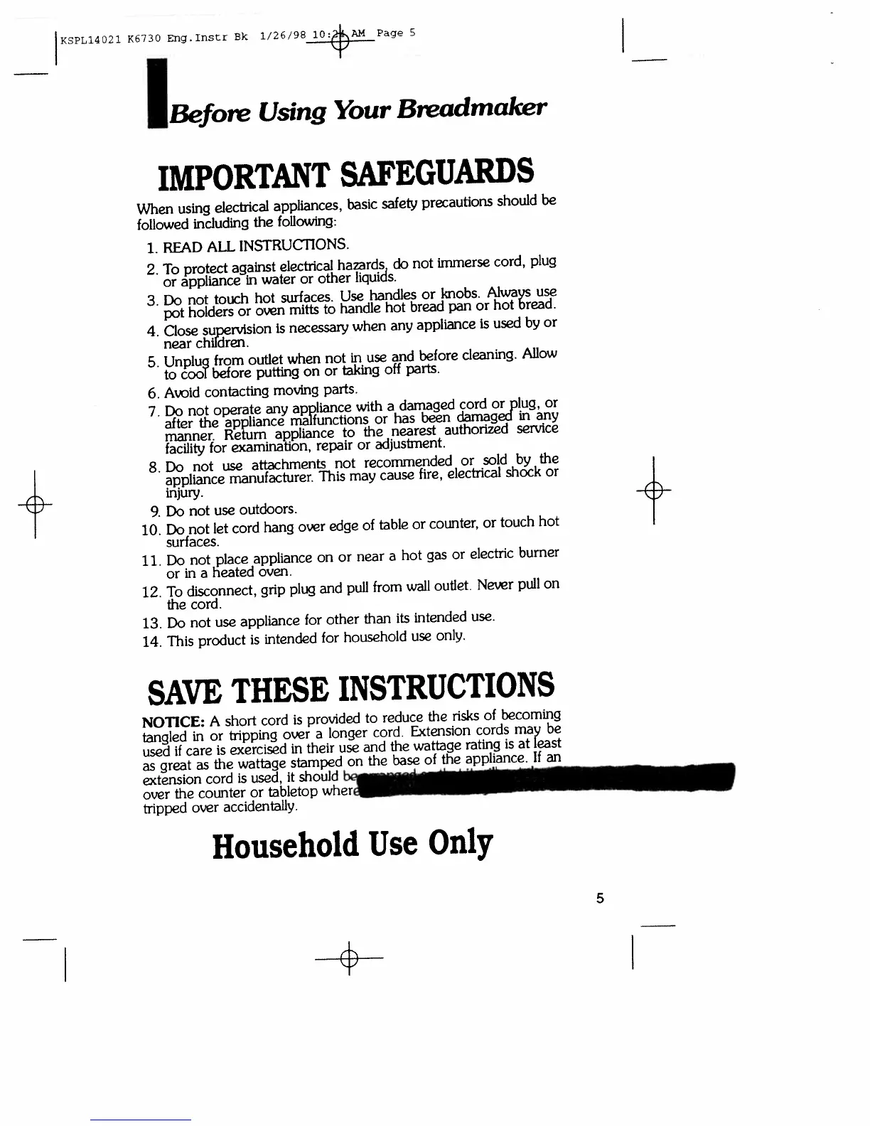 Regal K6730 - Important Safeguards