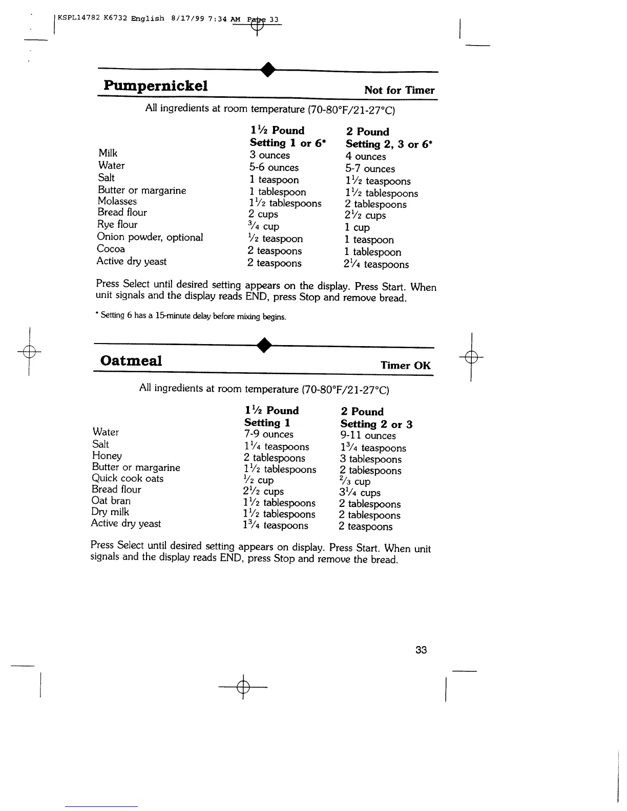 Regal K6732 - Pumpernickel; Oatmeal