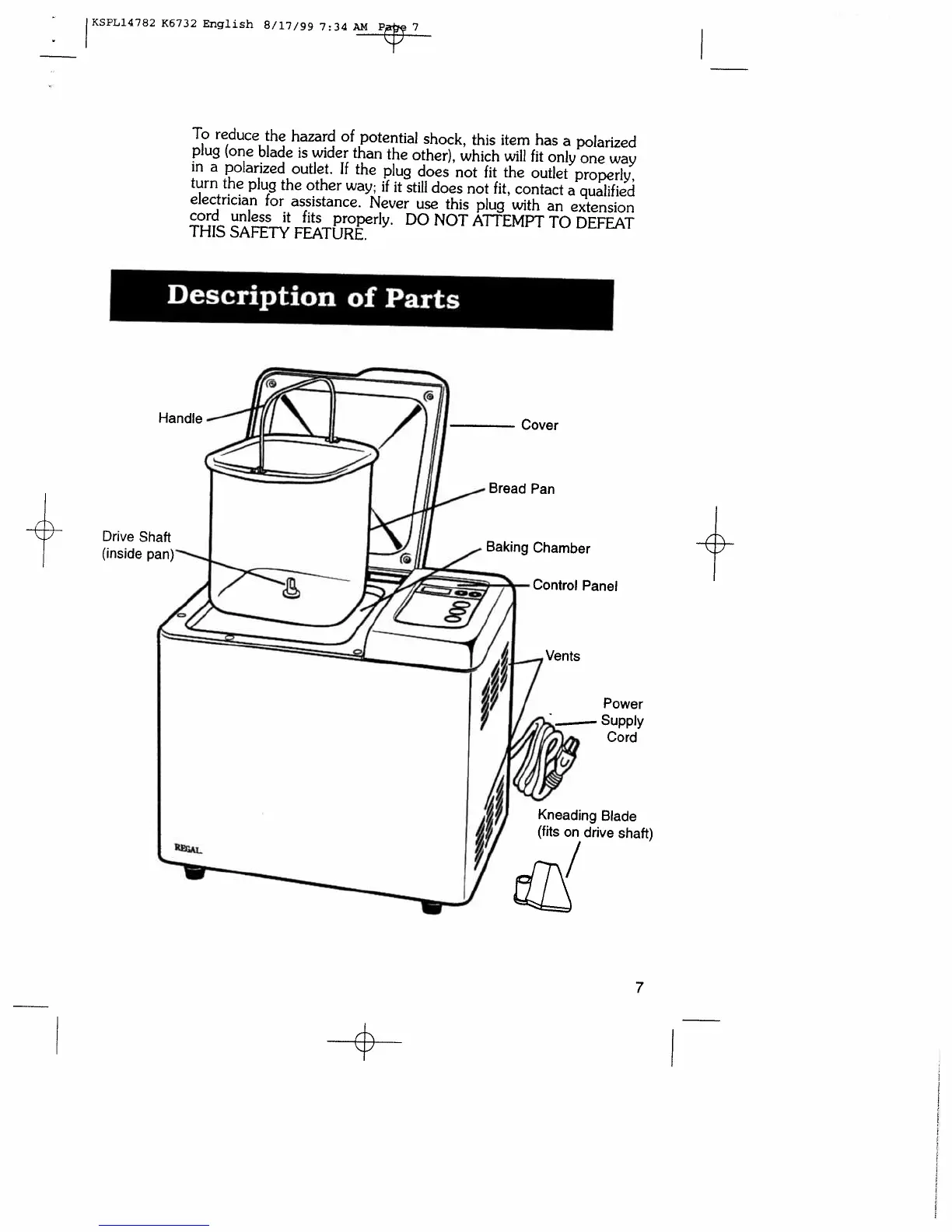 Regal K6732 - Description of Parts