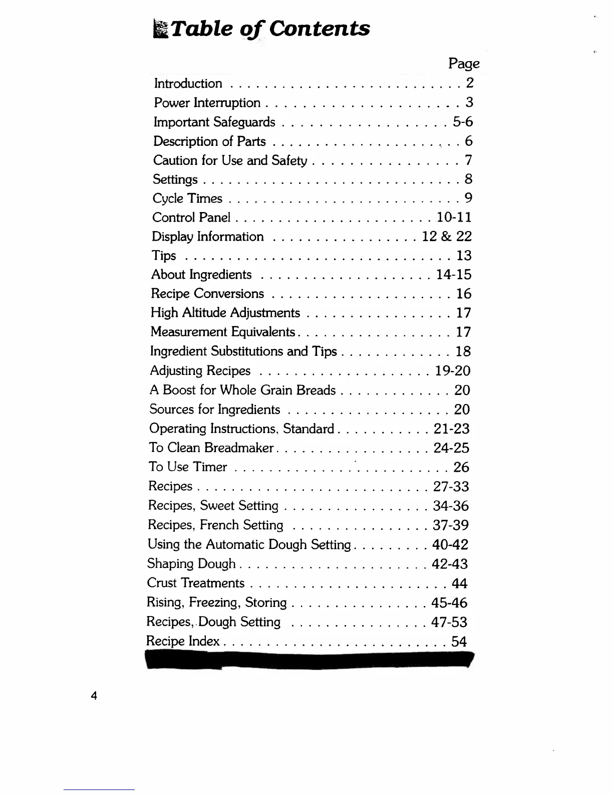Regal K6769C - Table of Contents