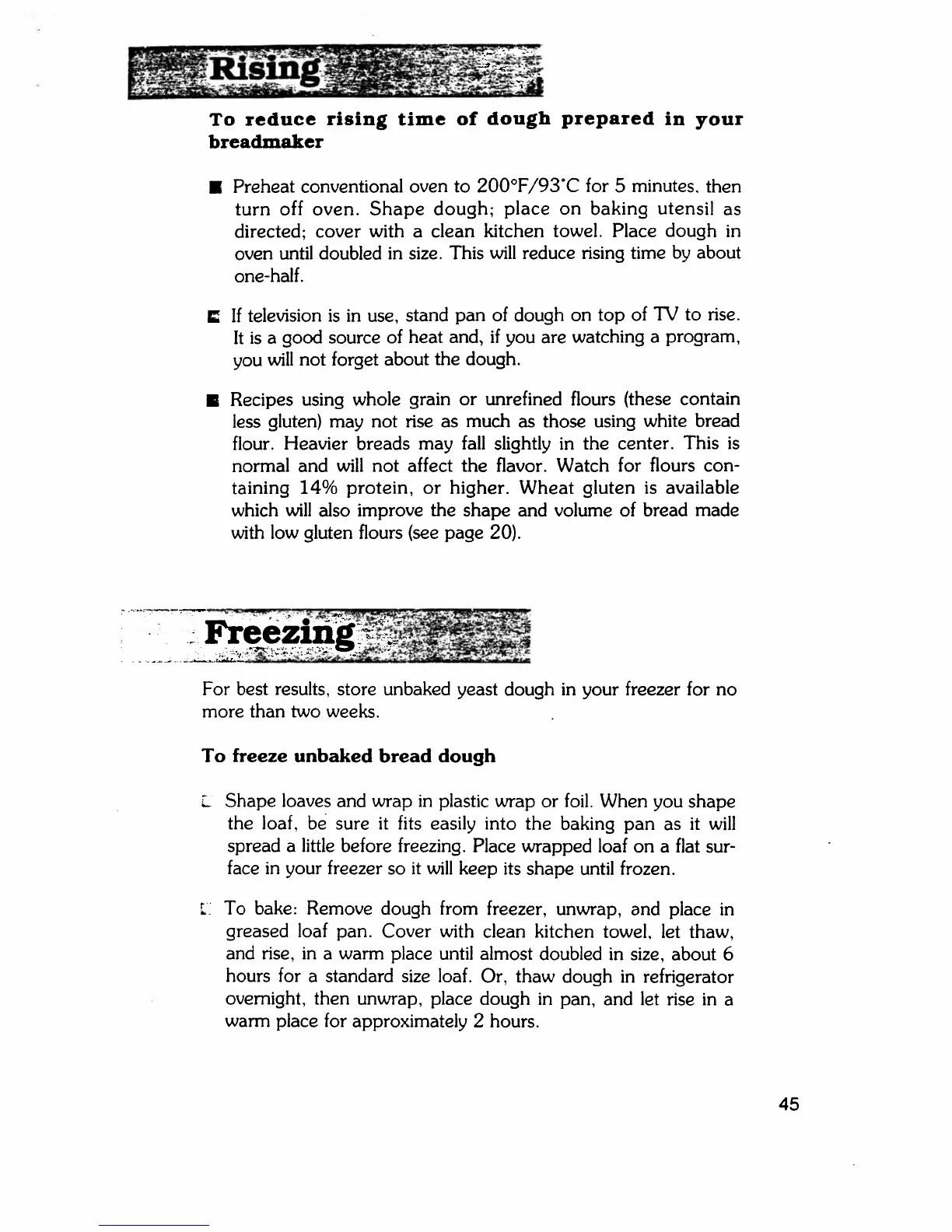 Regal K6769C - Rising; Freezing; To Freeze Unbaked Bread Dough