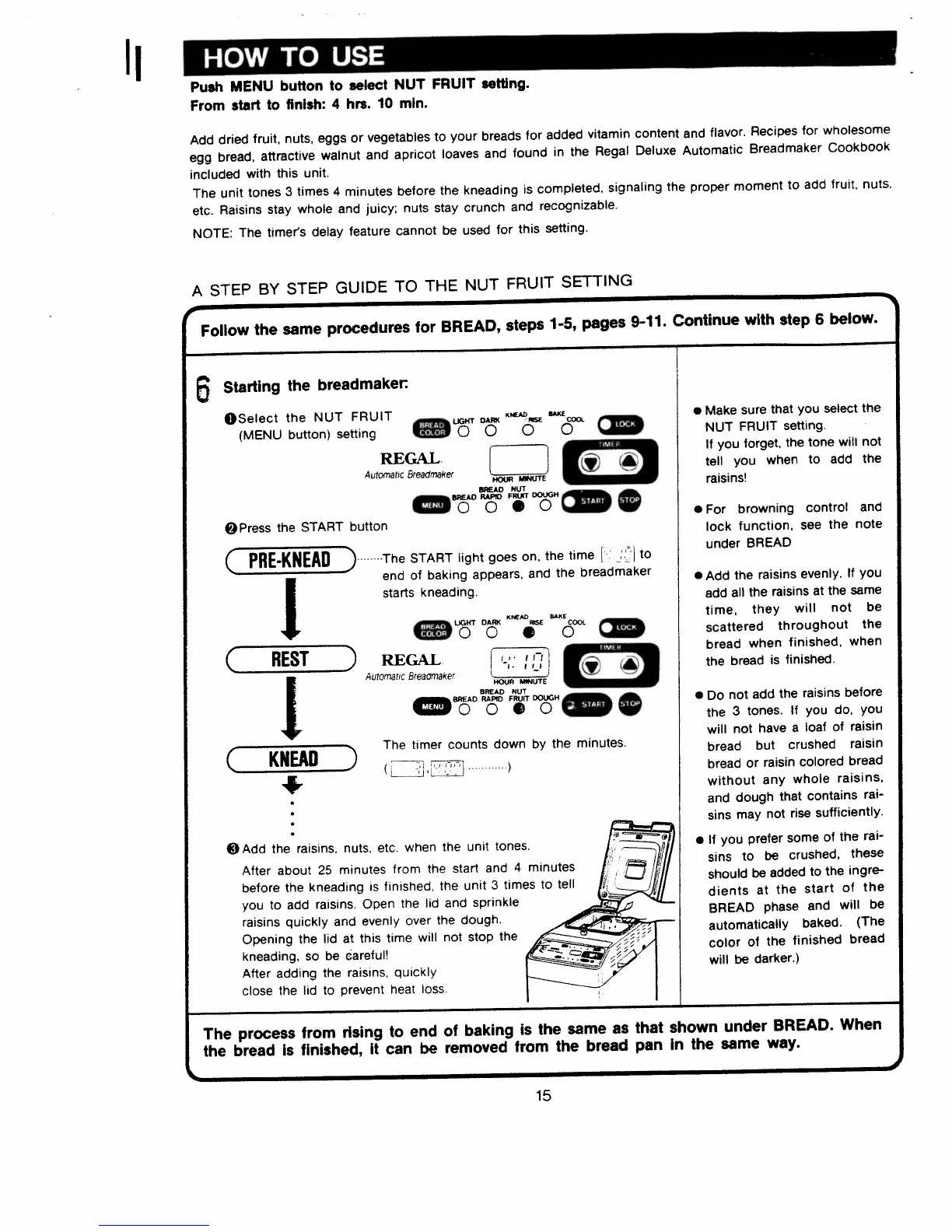 Regal K6771 - NUT FRUIT Setting Guide