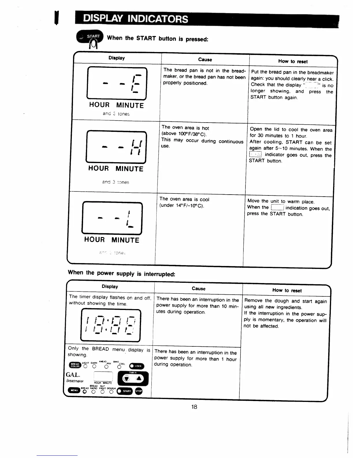 Regal K6771 - DISPLAY INDICATORS; Error and Interruption Displays