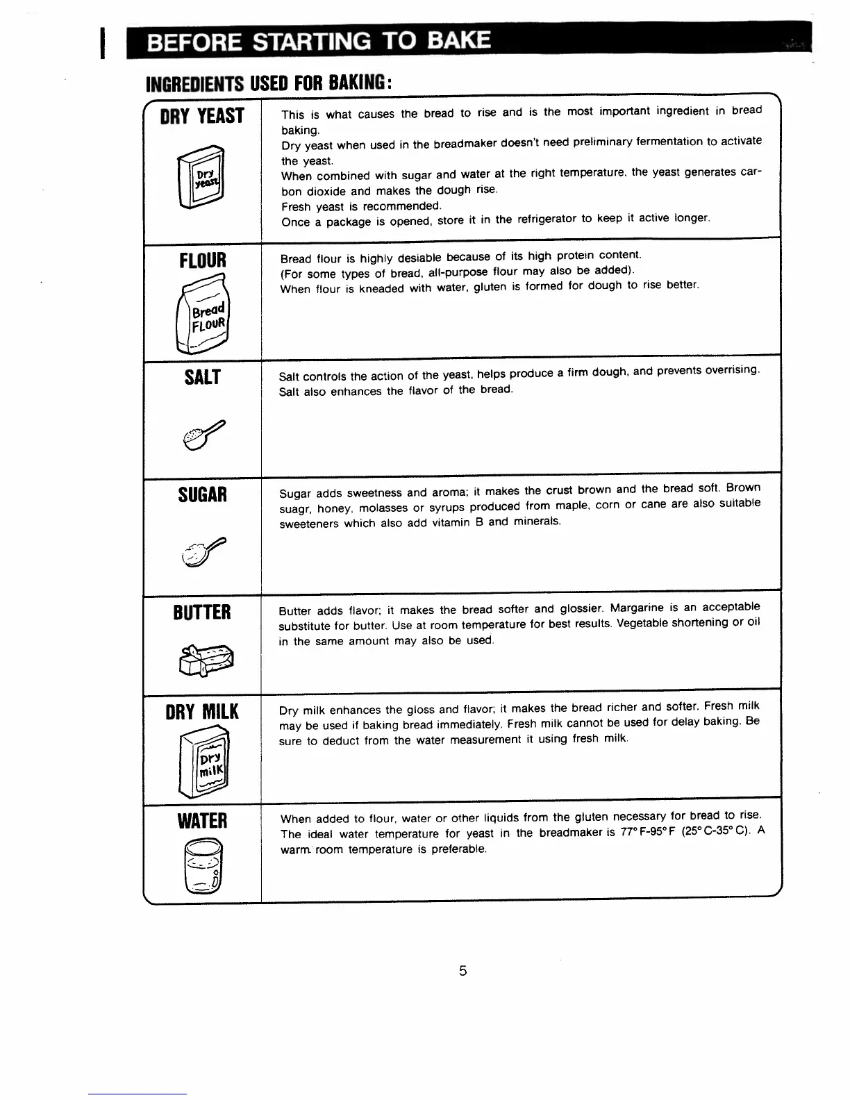 Regal K6771 - BEFORE STARTING TO BAKE; Essential Baking Ingredients