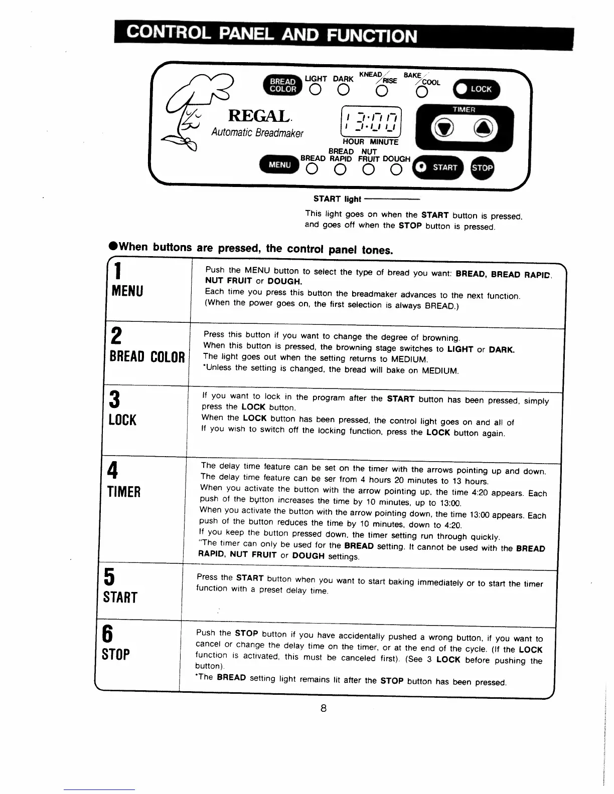 Regal K6771 - CONTROL PANEL AND FUNCTION; Control Panel Operation