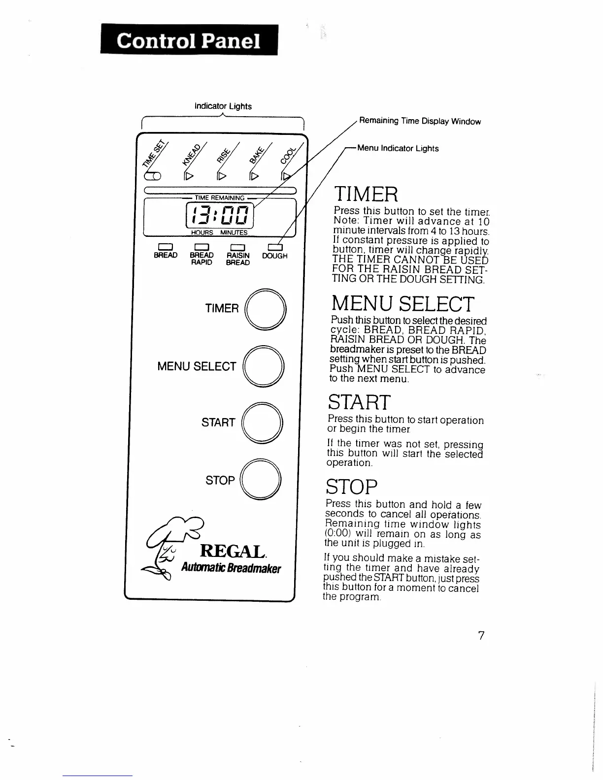 Regal K6772M - Control Panel