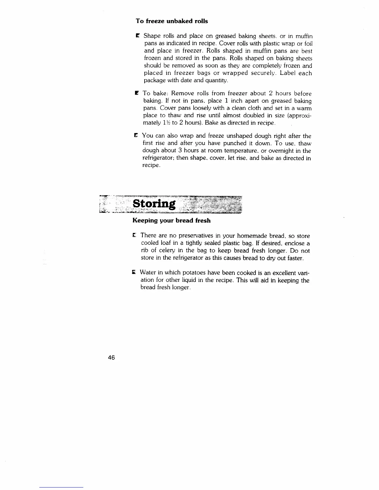 Regal K6773 - Storing; To Freeze Unbaked Rolls