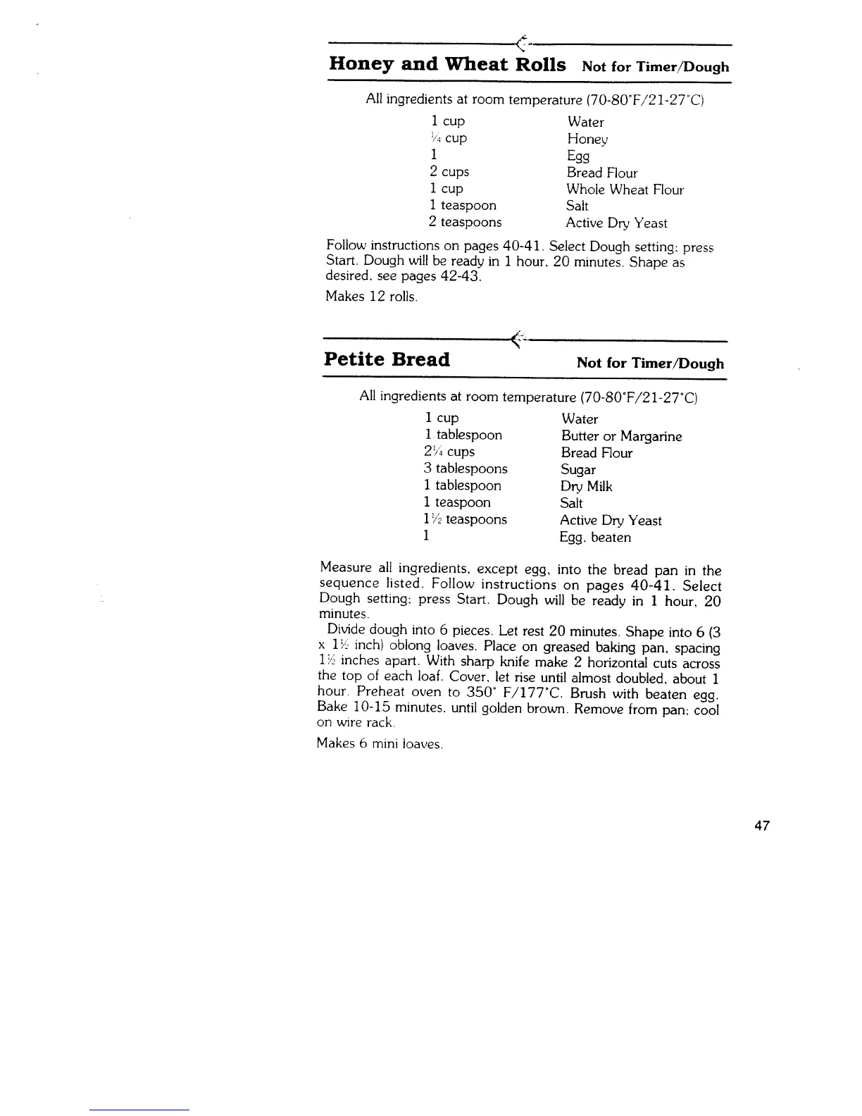 Regal K6773 - Dough Recipes; Honey and Wheat Rolls; Petite Bread