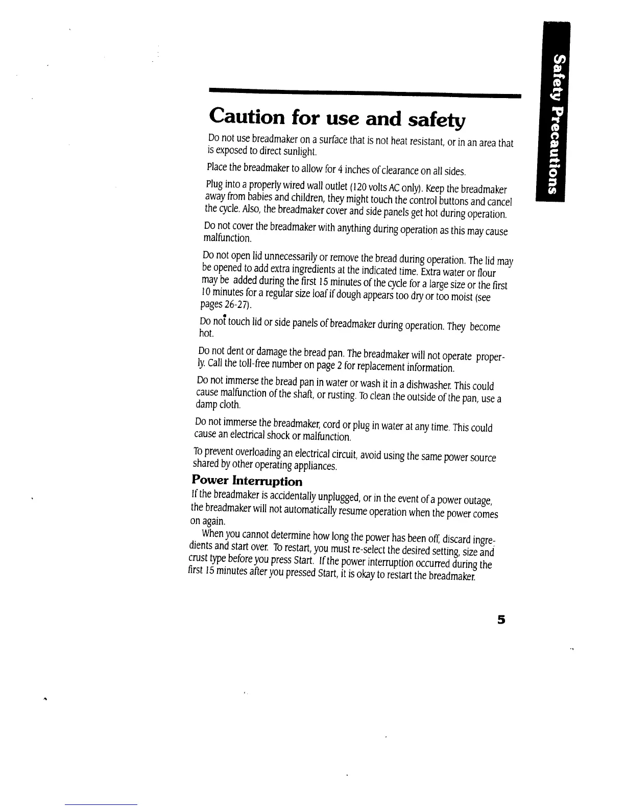 Regal K6776 - Caution for Use and Safety; Power Interruption Handling