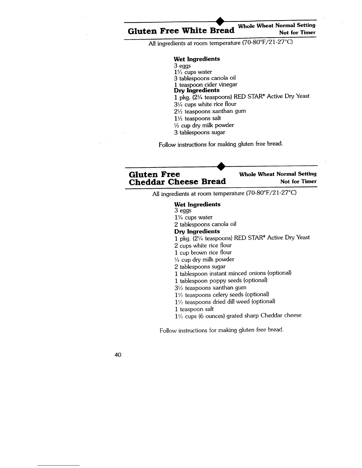 Regal k6783 - Gluten Free White Bread; Gluten Free Cheddar Cheese Bread
