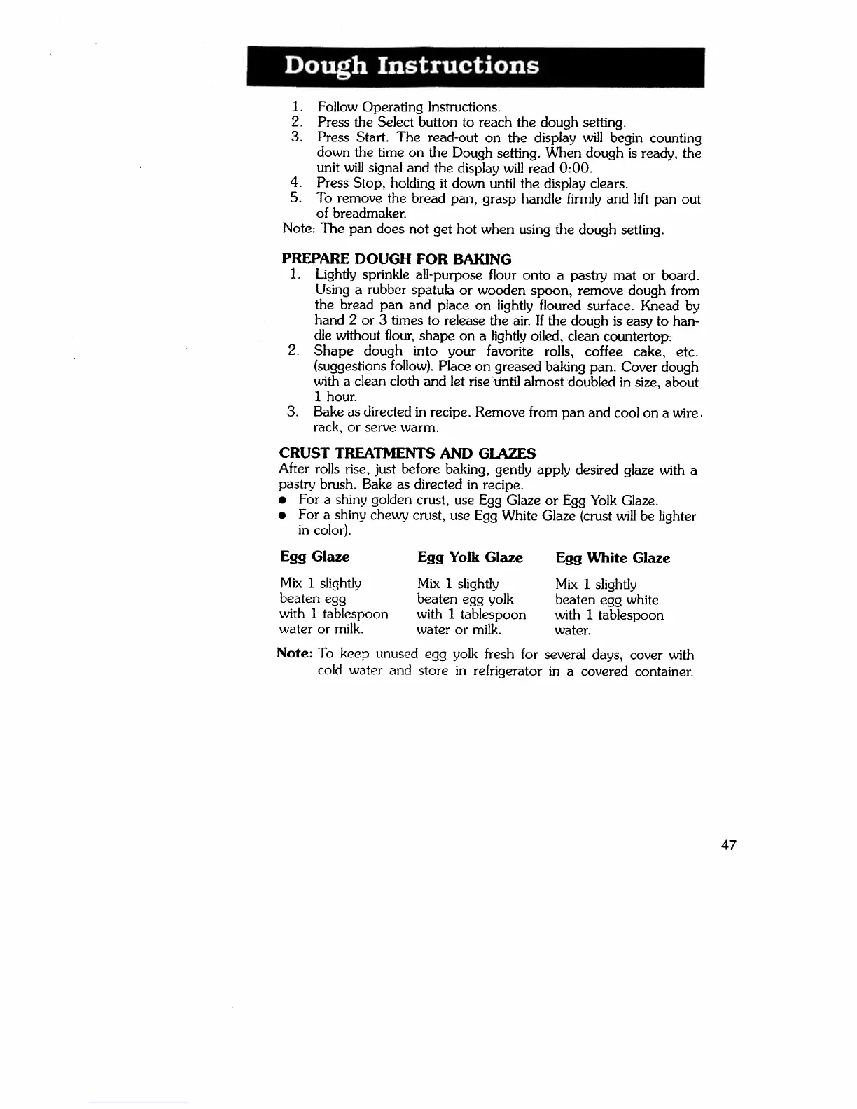 Regal k6783 - Dough Instructions; PREPARE DOUGH FOR BAKING