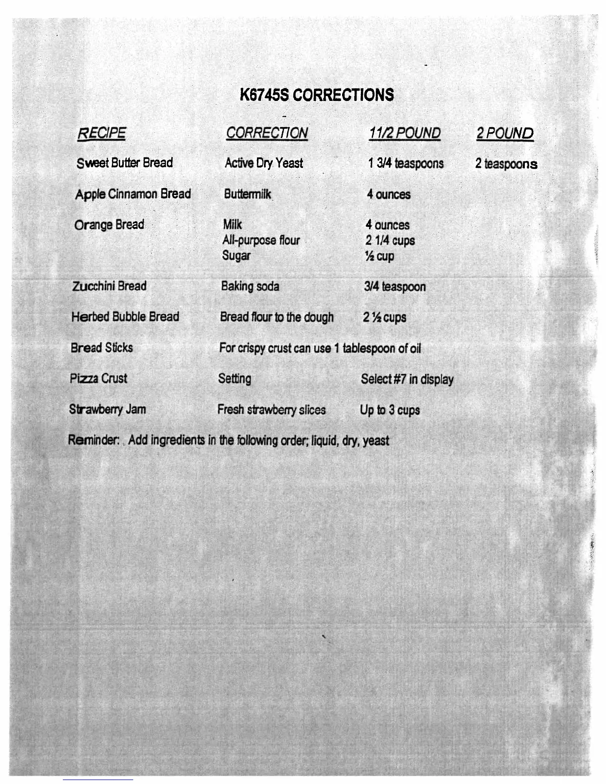 Regal Kitchen Pro K6745S - Corrections