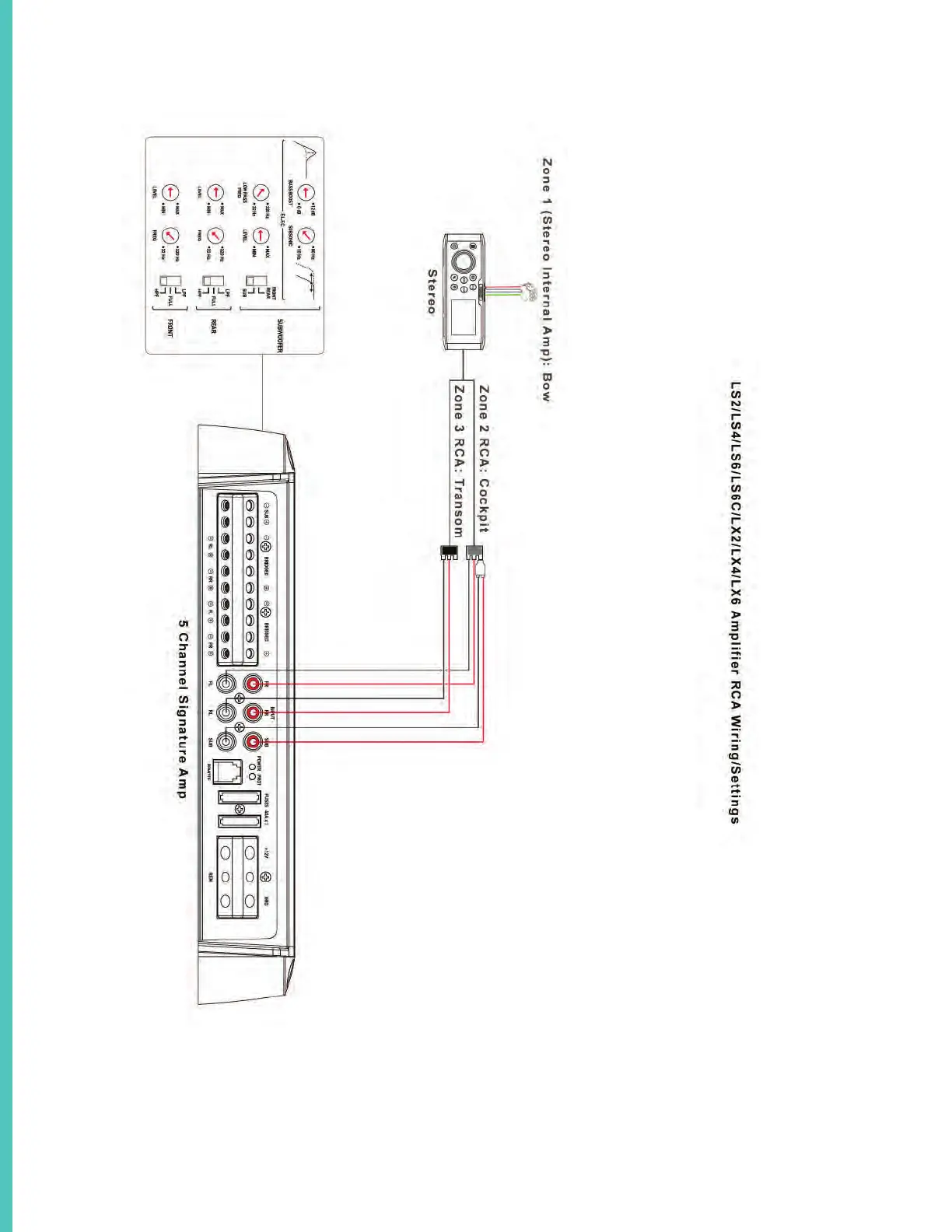 TYPICAL LX SERIES STEREO AMPLIFIER WIRING SETTINGS