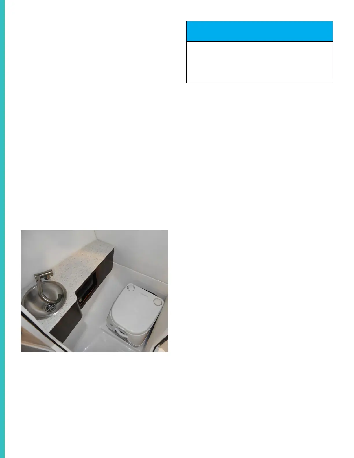 • Never fill the portable toilet with chemicals when