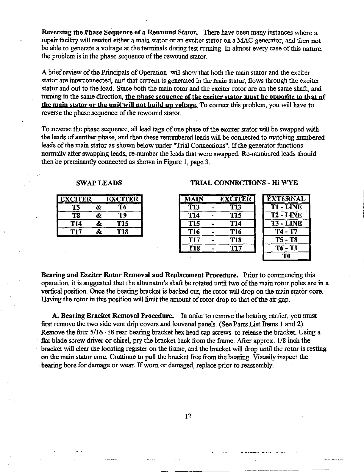 bearing bracket is backed out, the rotor will drop