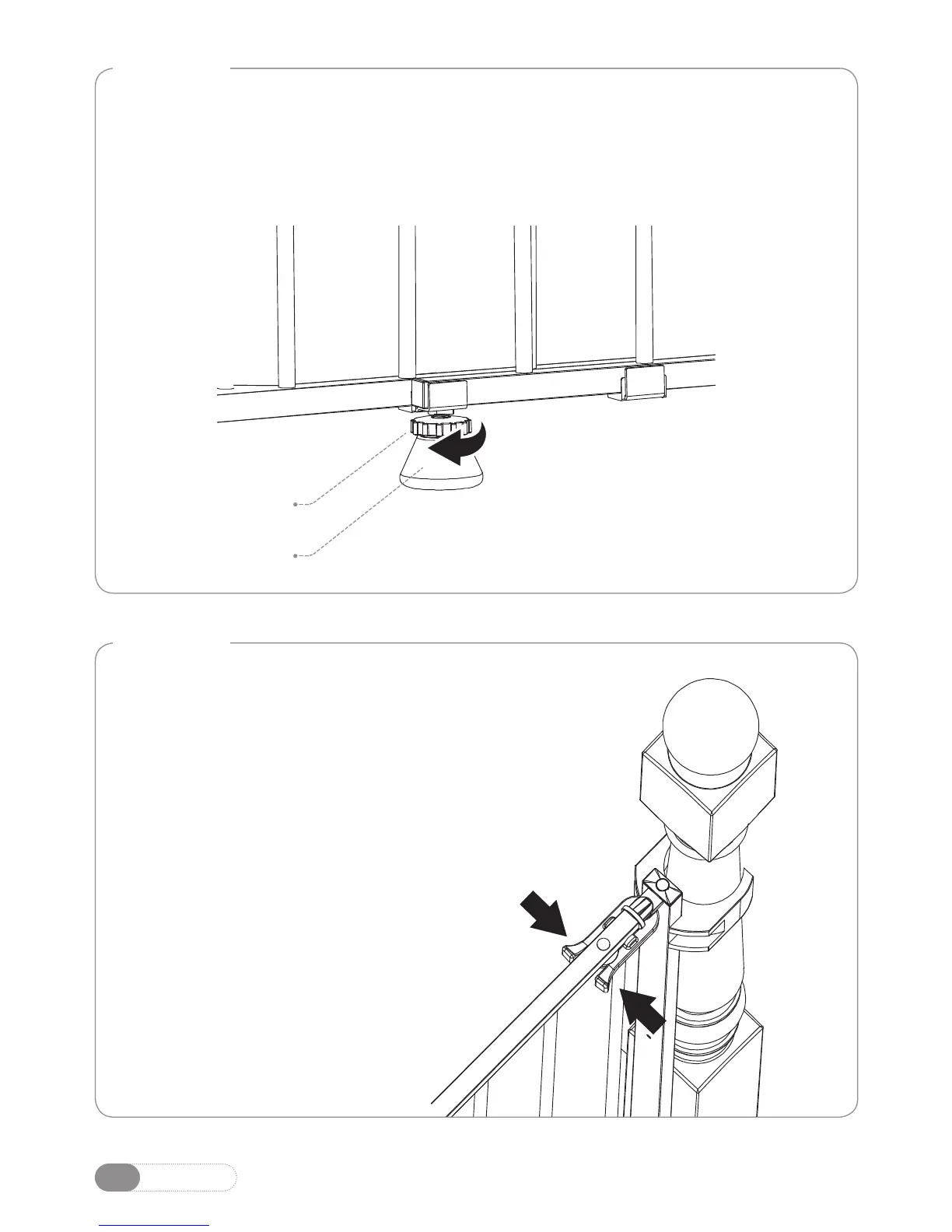 La barrière étant verrouillée dans l'ouverture, ajustez le pied de la barrière
