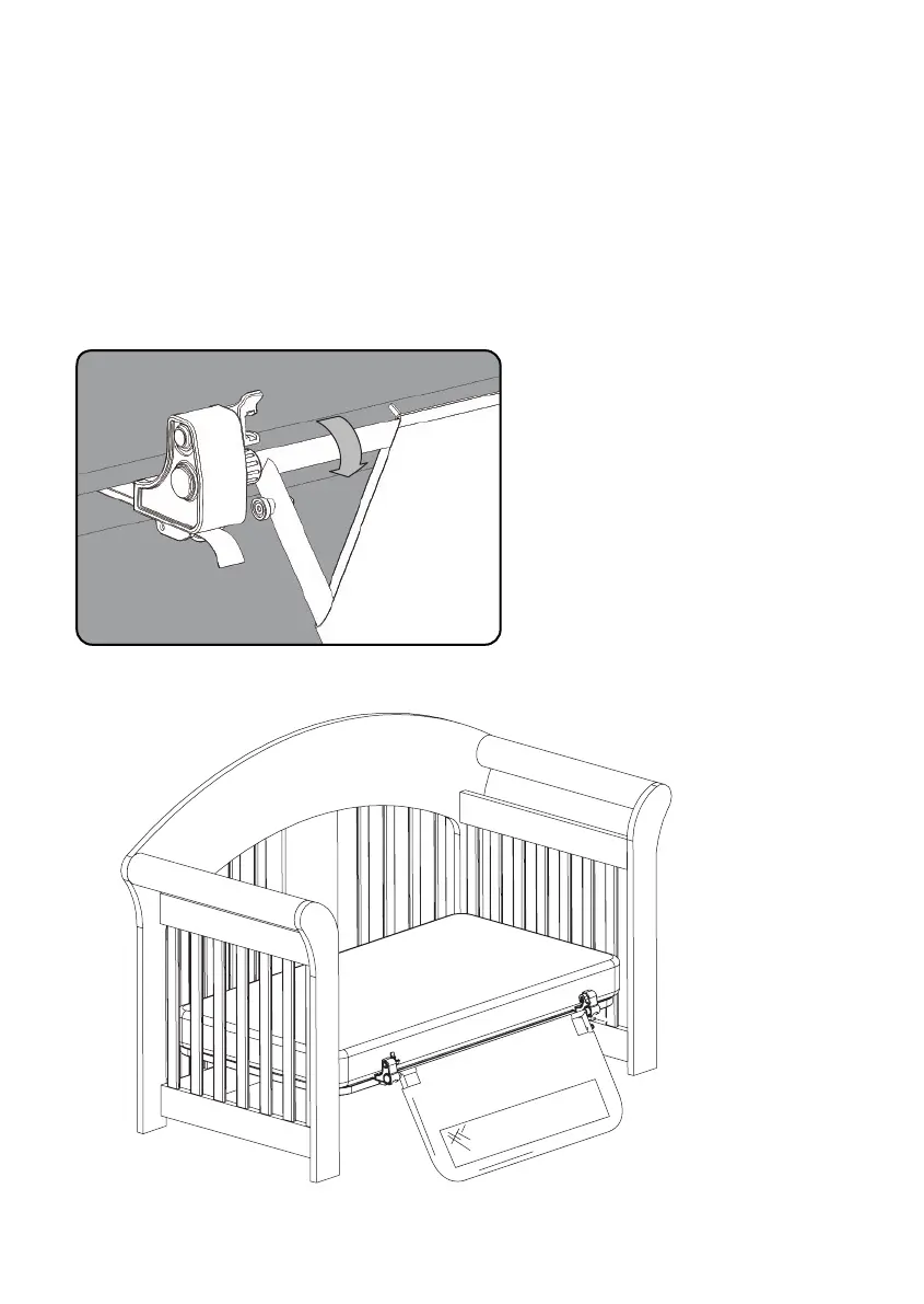 IMPORANT: Make sure that the crib rail is in the ‘up’ position and the locking tabs are