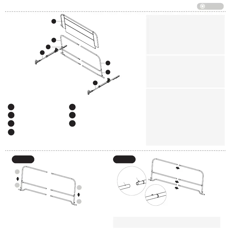 dans les trous opposés de la barrière de lit pour verrouiller les deux pièces.