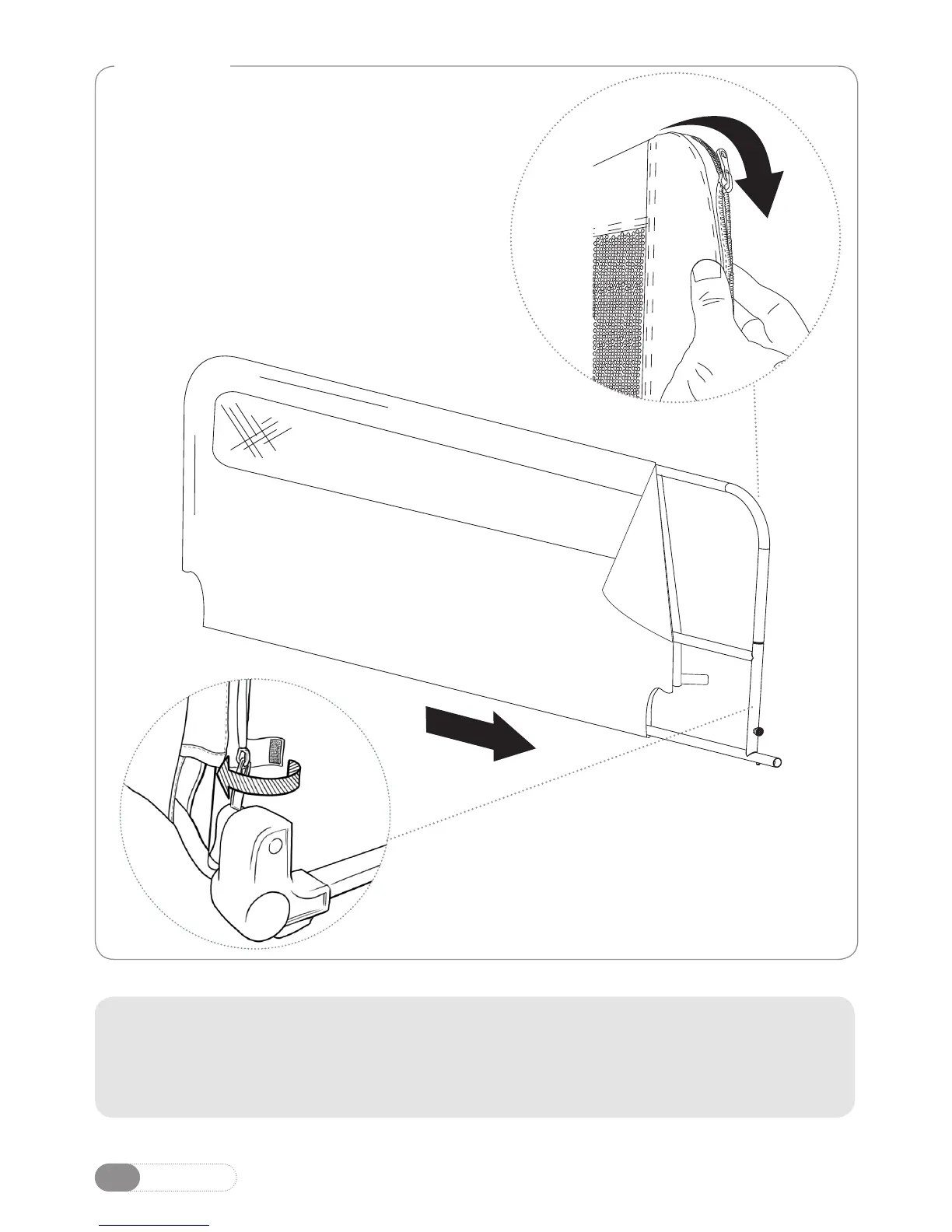 pour fermer la housse correctement sur le cadre. N’UTILISEZ PAS la barrière de