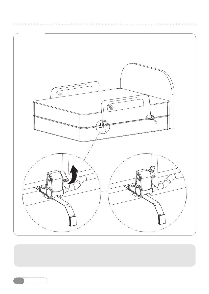 La barrière de lit étant en position relevée, libérez les pattes de blocage