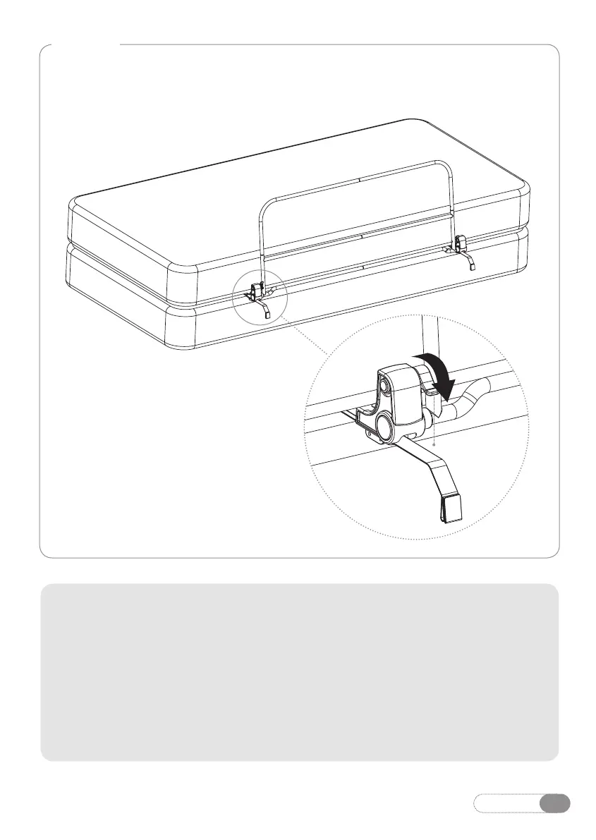 Con la barandilla en posición subida, empuje hacia abajo las lengüetas