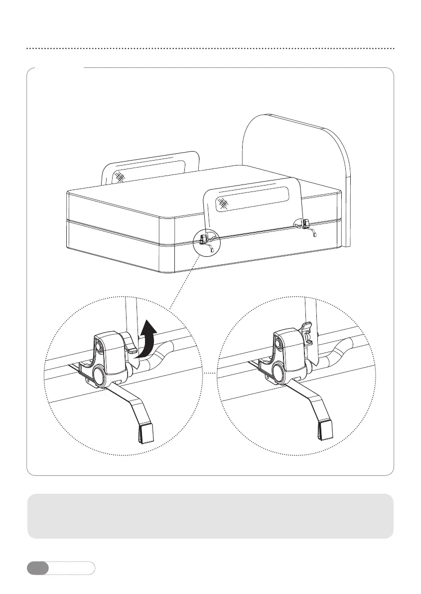 Una vez que la barandilla esté en posición subida, libere las lengüetas