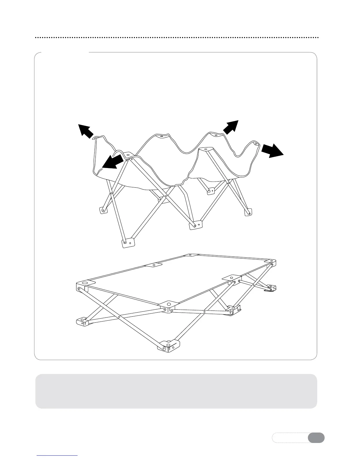 Pull the four corners away from each other. The frame and bed surface will