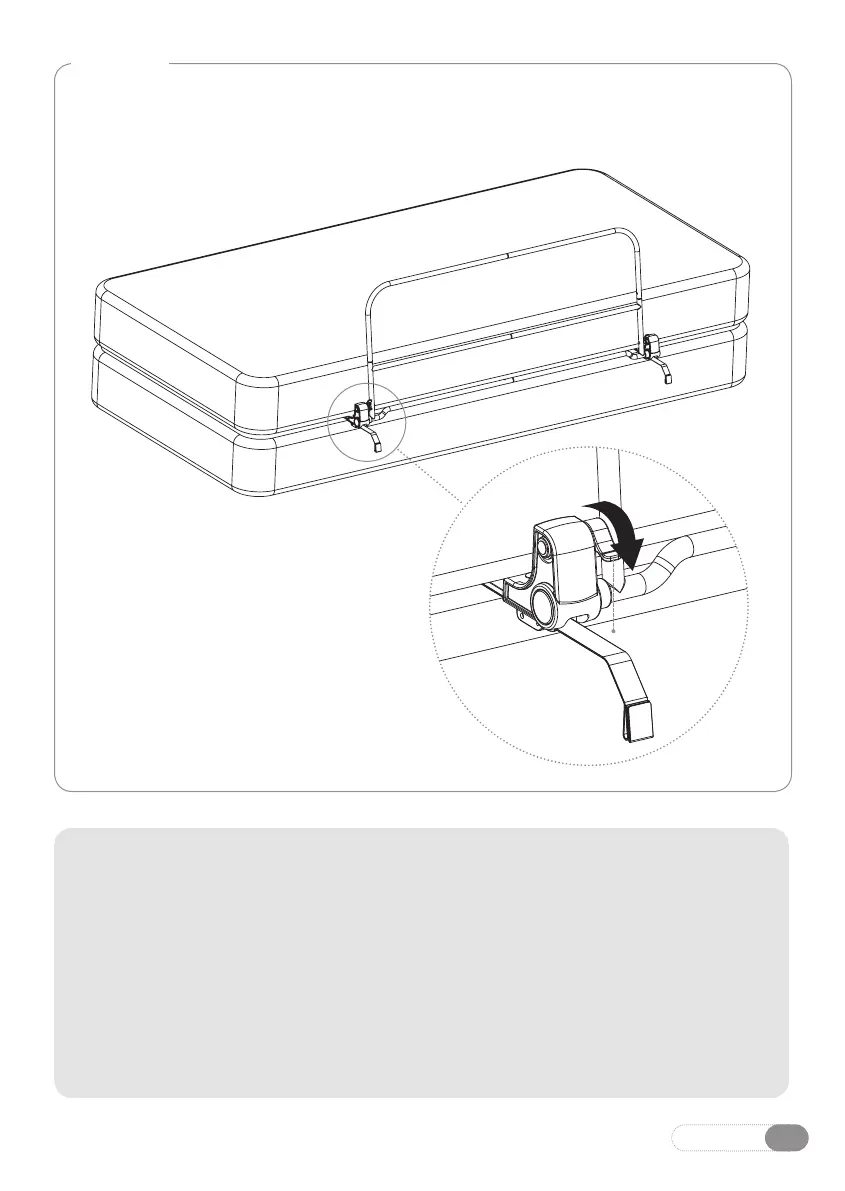 With your crib rail in the 'up' position push down on the locking tabs to secure
